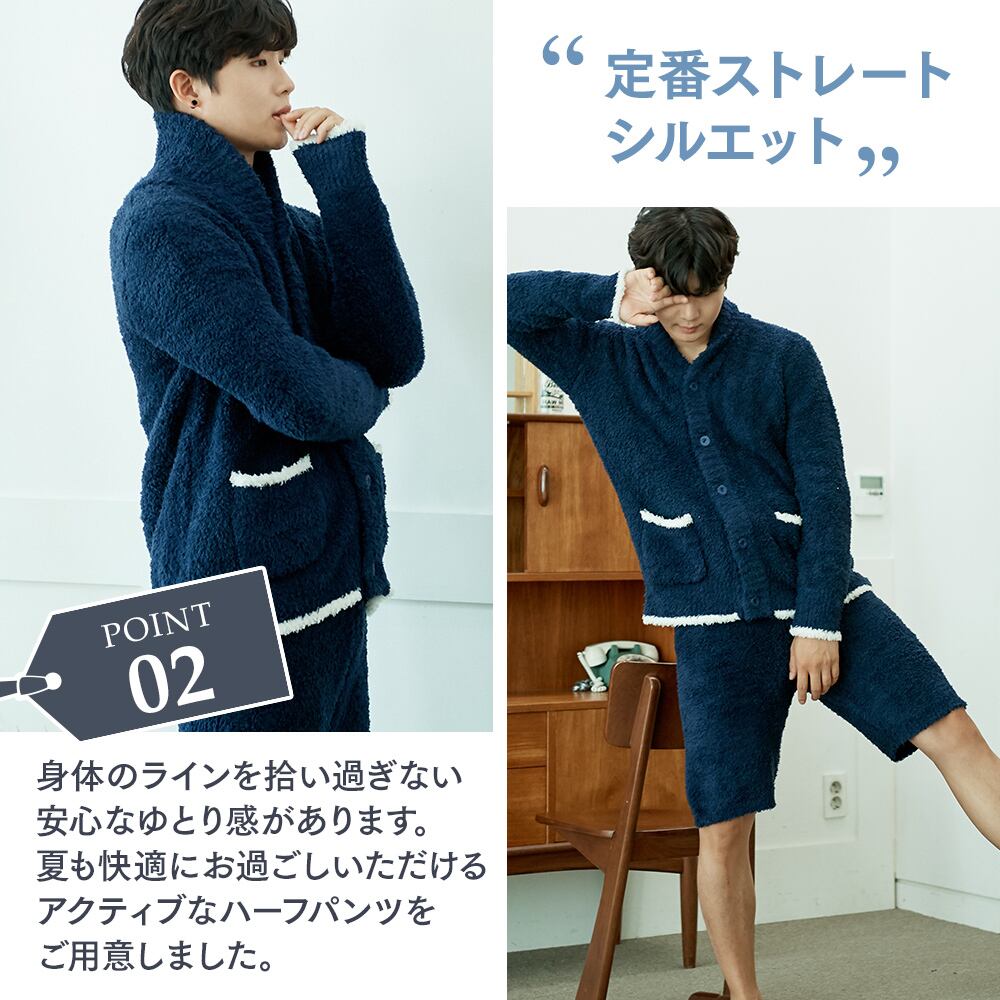Luanna Jena ルームウェア パジャマ メンズ モコモコ 長袖 半ズボン 冬用 上下 セット 裏起毛 セットアップ 前開き 部屋着 ルアンナ ジェナ QW21